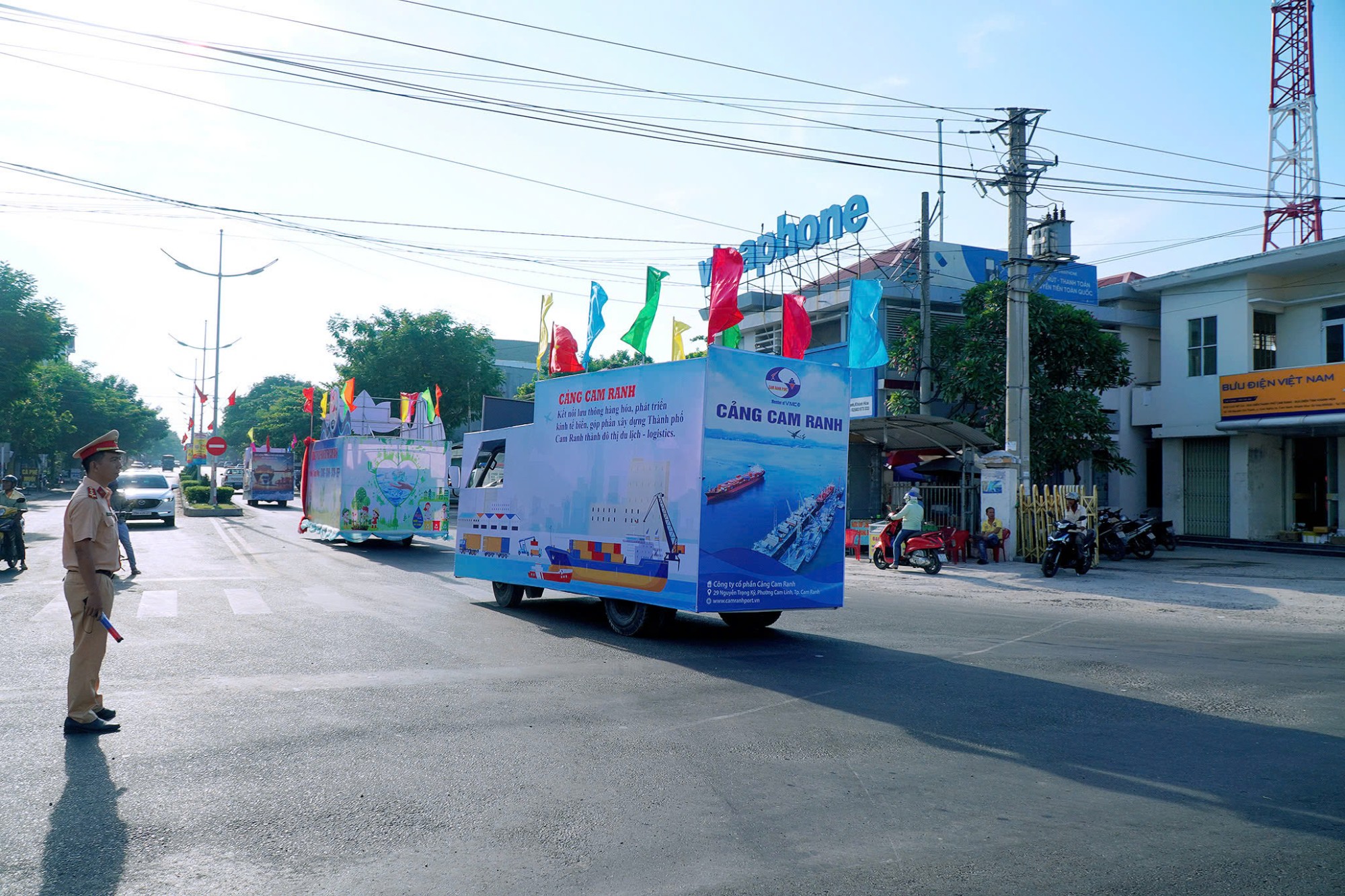 Từ 6h sáng, xe hoa của Cảng Cam Ranh đã tập trung tại quảng trường 18/10 cùng xe hoa của UBND thành phố, xe hoa của 15 xã, phường trực thuộc thành phố Cam Ranh và xe đạp của CLB xe đạp Cam Ranh. Đoàn diễu hành xuất phát từ Quảng trường Công viên 18/10 (Phạm Văn Đồng), qua các cung đường lớn của thành phố.