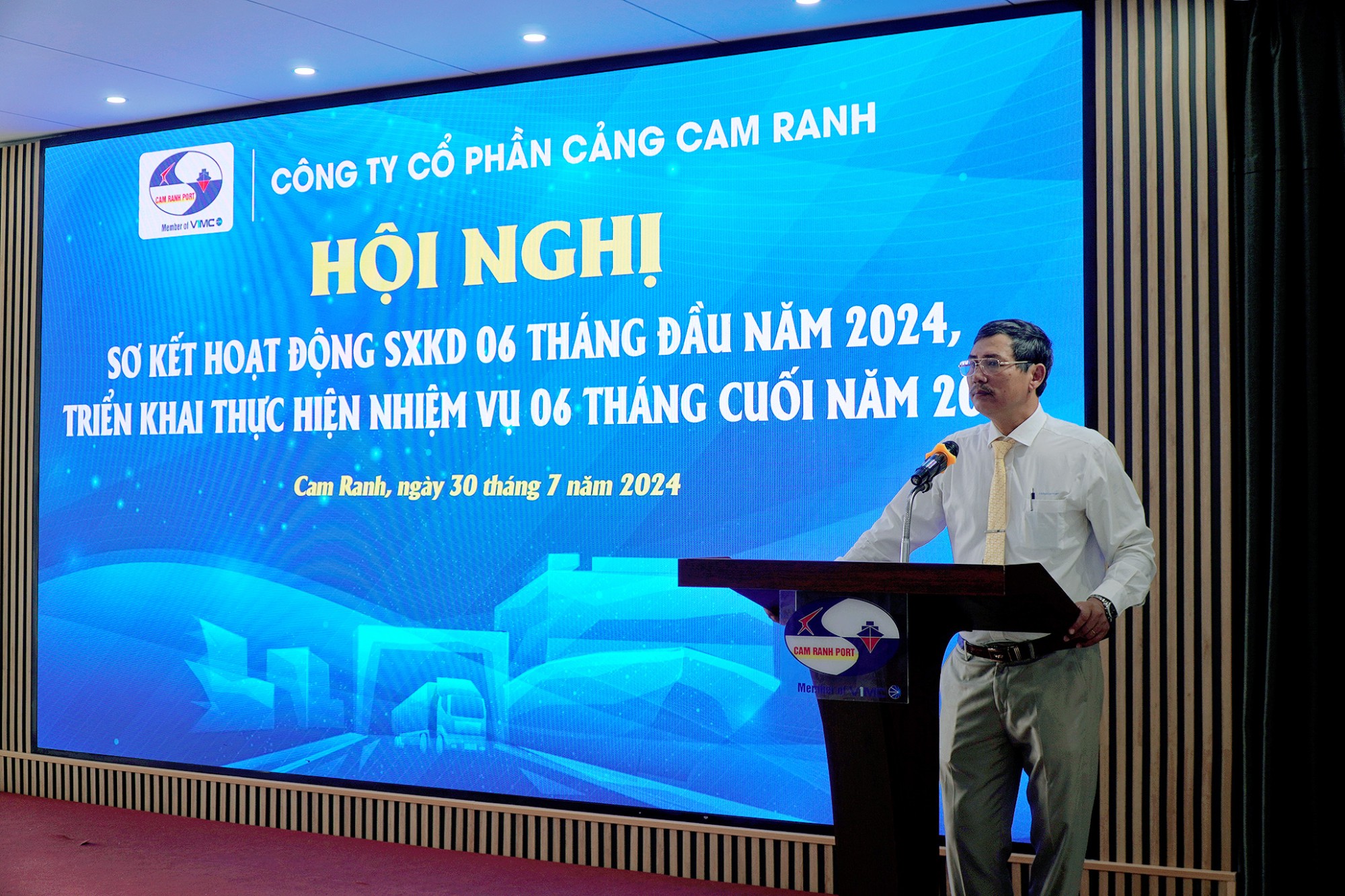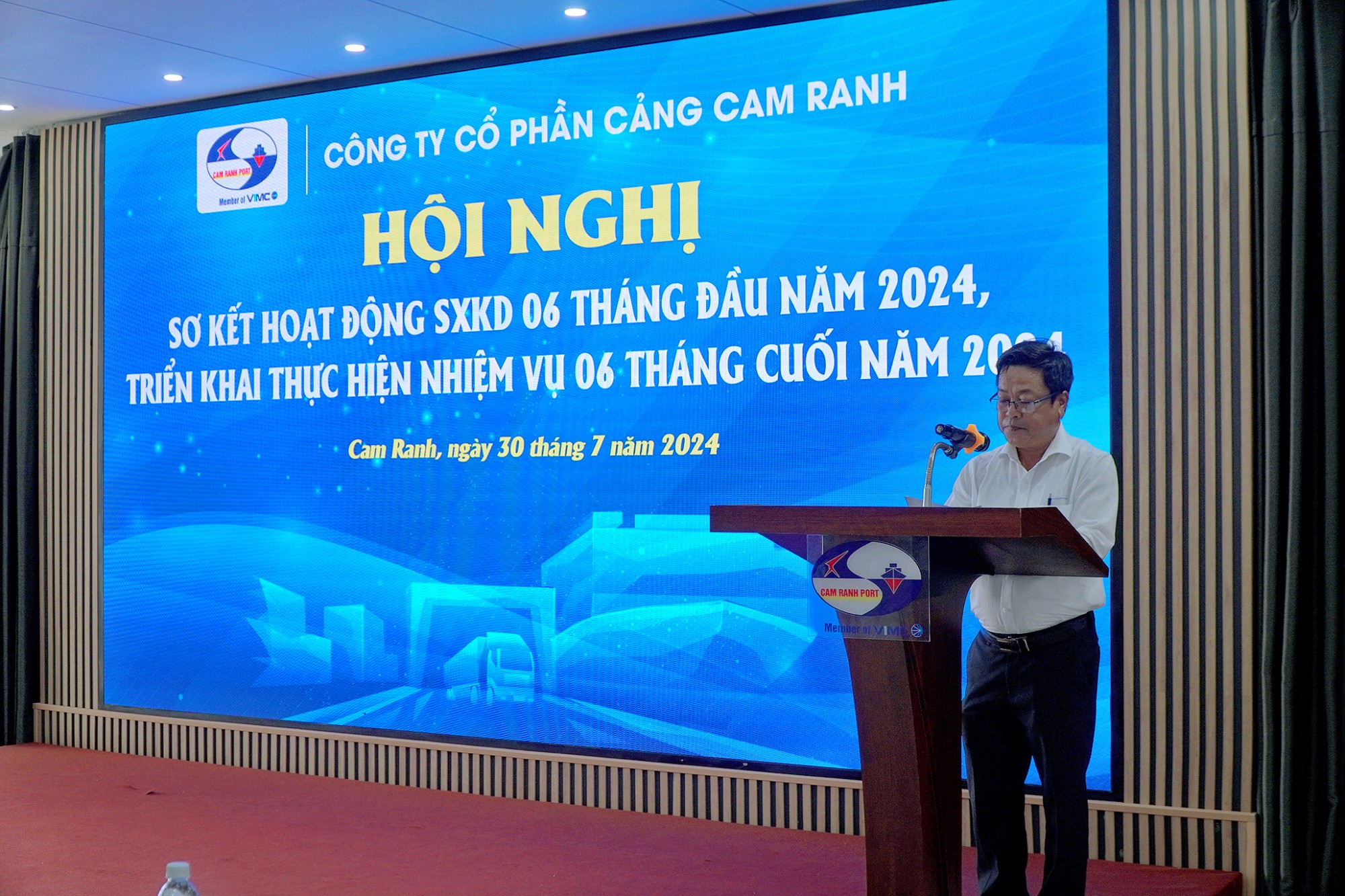 Sáng 30/07/2024, Công ty cổ phần Cảng Cam Ranh đã tổ chức hội nghị Sơ kết hoạt động sản xuất kinh doanh (SXKD) 6 tháng đầu năm 2024 với sự tham gia của lãnh đạo và toàn thể cán bộ công nhân viên (CBCNV) Công ty.