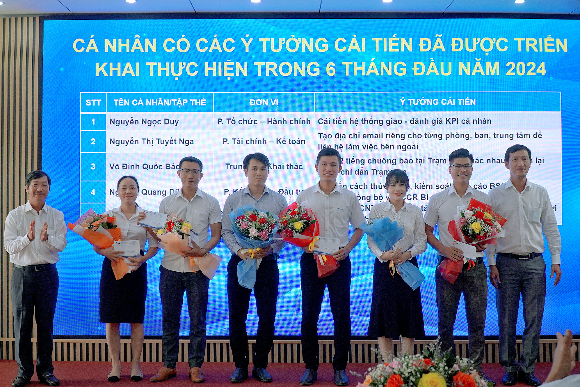 Hội nghị kết thúc với phần khen thưởng cho các tập thể, cá nhân có thành tích xuất sắc trong hoạt động SXKD 6 tháng đầu năm 2024, các tập thể có thành tích trong phong trào thi đua tháng Công nhân và tháng ATVSLĐ, các tập thể cá nhân có ý tưởng cải tiến đã được triển khai thực hiện trong 6 tháng đầu năm, và cá nhân có thành tích trong Cuộc thi Đổi mới sáng tạo trẻ VIMC năm 2024.