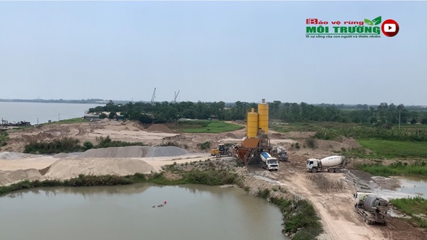 Theo ghi nhận thực tế của phóng viên khu vực phía nam cầu Thái Hà không những k dừng lại việc tập kết cát và sản xuất bê tông mà còn đang xuất hiện máy móc thực hiện hoạt động san ủi mặt bằng.