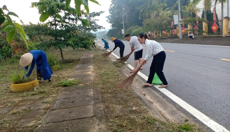 Người dân thôn Tân Phú (xã Tân Lập, huyện Đầm Hà) vệ sinh môi trường đường liên thôn hưởng ứng phong trào “Ngày chủ nhật xanh”.